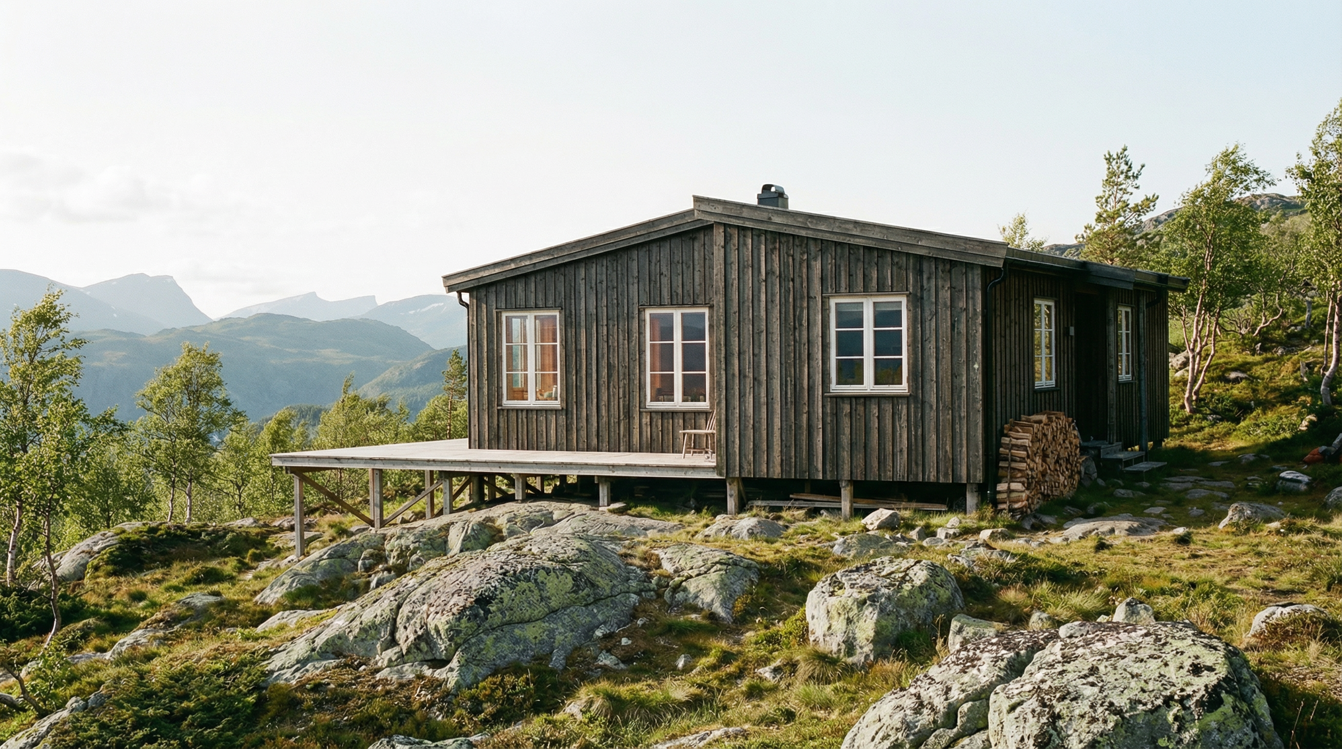 Idyllisk fjellhytte med panoramautsikt og solrik beliggenhet. 2 soverom | Romslig stue med peis | Stor terrasse | Nærhet til turløyper og fiskevann | Nyoppusset bad
